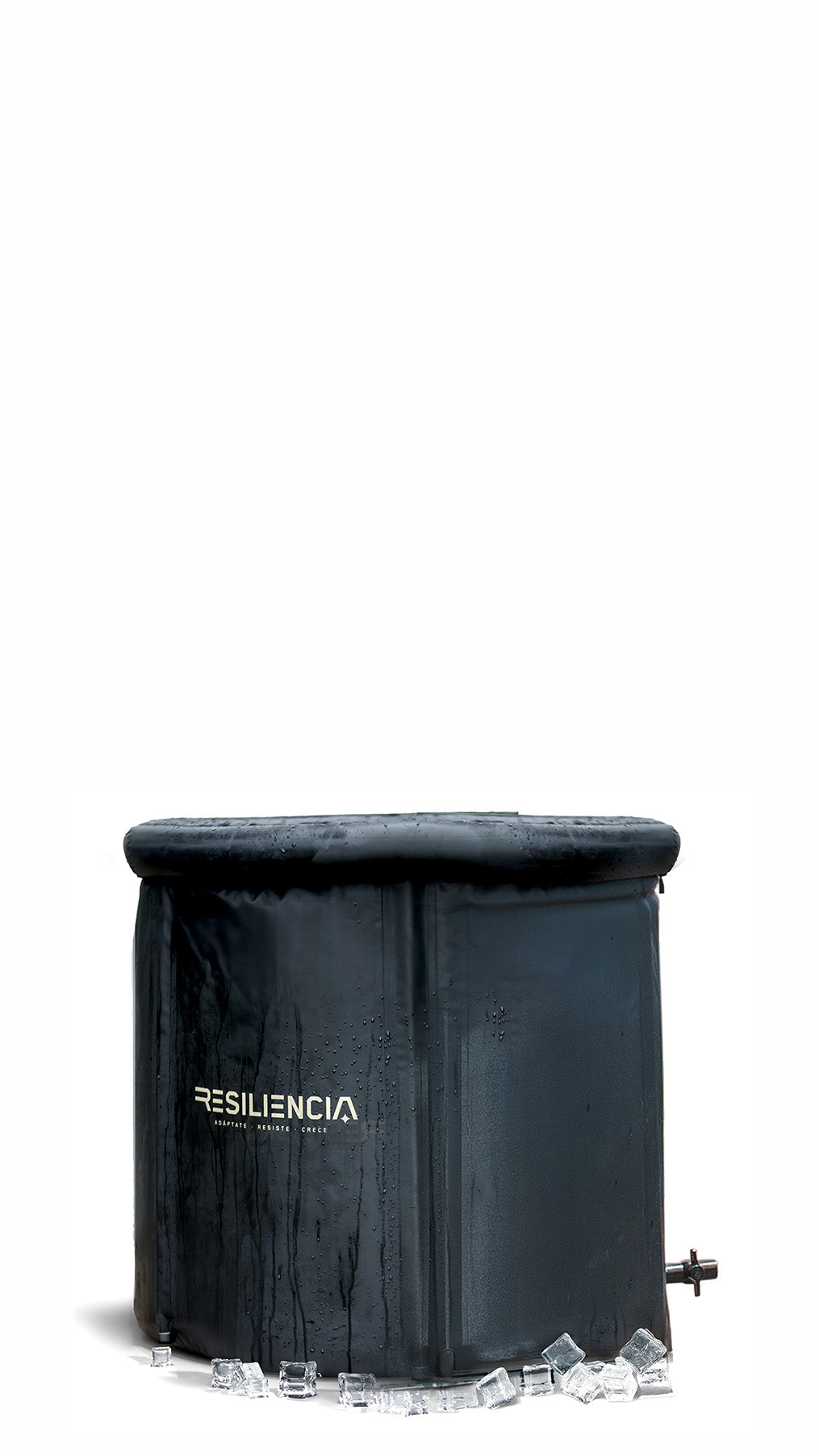 Después de llenar de agua hasta esa parte entonces agregar hielo al gusto. Nosotros te recomendamos que uses entre 9 y 20kgs máximo de hielo. El Hielo lo puedes conseguir en un supermercado, por lo general venden bolsas de 2 a 3kgs. Como la combinación de agua y hielo es diferente para cada persona de acuerdo a su peso, y el clima o temperatura del lugar en donde se este, entonces recomendamos que encuentren su medida ideal a travez de la practica.